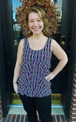 Cat, marketing guru is 5'2" tall and typically wears an XS in all lines at Blooming Boutique. She wears a small in the Lulu B linen jacket. For jeans she wears a 5 or 26. For skinny jeans, she wears a 27.