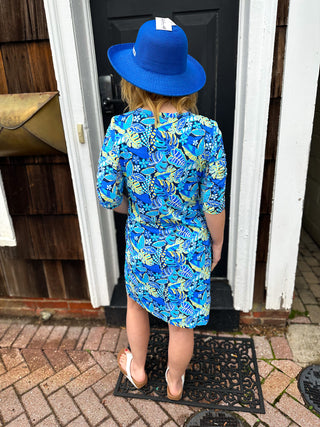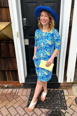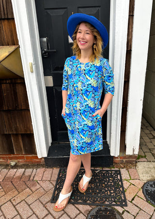 Beachtime by Lulu B Blue and Yellow Flower 3/4 Sleeve Dress