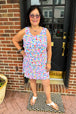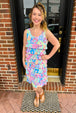 This dress is perfect for going out to dinner or sitting at the bar!  The ruffles and prints make this dress the ultimate "tummy-issue-disguiser".  You'll look and feel fabulous in this dress that looks great on everyone!  Wear sleeveless or pair with a linen jacket or cardigan for extra warmth.
