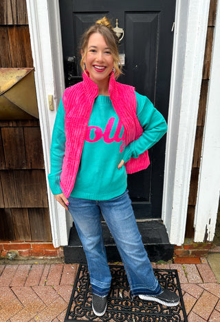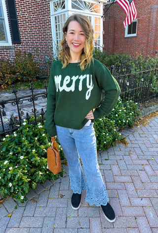 Cozy Kelly Green 'Merry' Knit Christmas Sweater