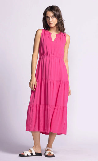 Beachtime by Lulu B Black and Stone Palms Sleeveless Quarter Zip Dress