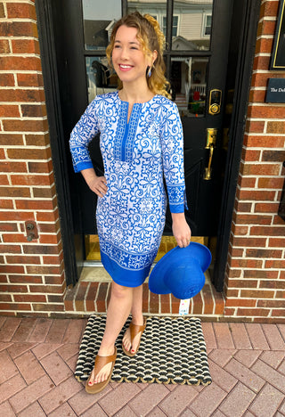 Beachtime by Lulu B Navy Hibiscus Sleeveless Quarter Zip Dress