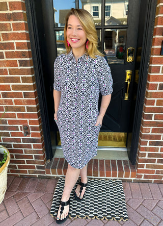 Lulu B Bright Periwinkle Flower Short Sleeve Quarter Zip Dress