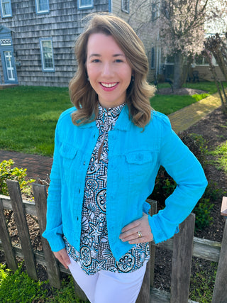 Lulu B Clear Turquoise Sleeveless Zip Top