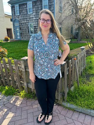 Lulu B Navy Rope Short Sleeve Collar Top