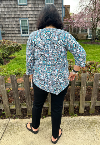 Lulu B Black and Turquoise Shells Sleeveless Keyhole Top