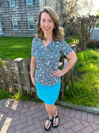 Lulu B Turtle Lattice Short Sleeve V-neck Top