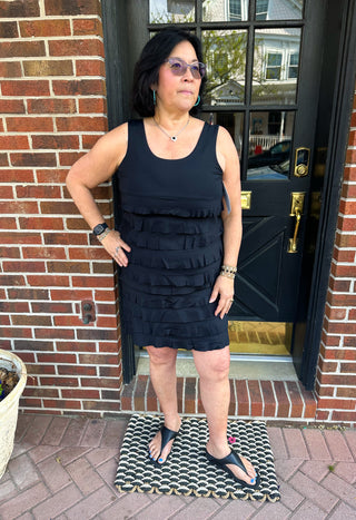 Lulu B Black and White Medallions Sleeveless Cha Cha Tank