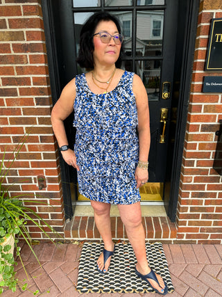 Lulu B Dark Blue Vine Sleeveless Cha Cha Tank