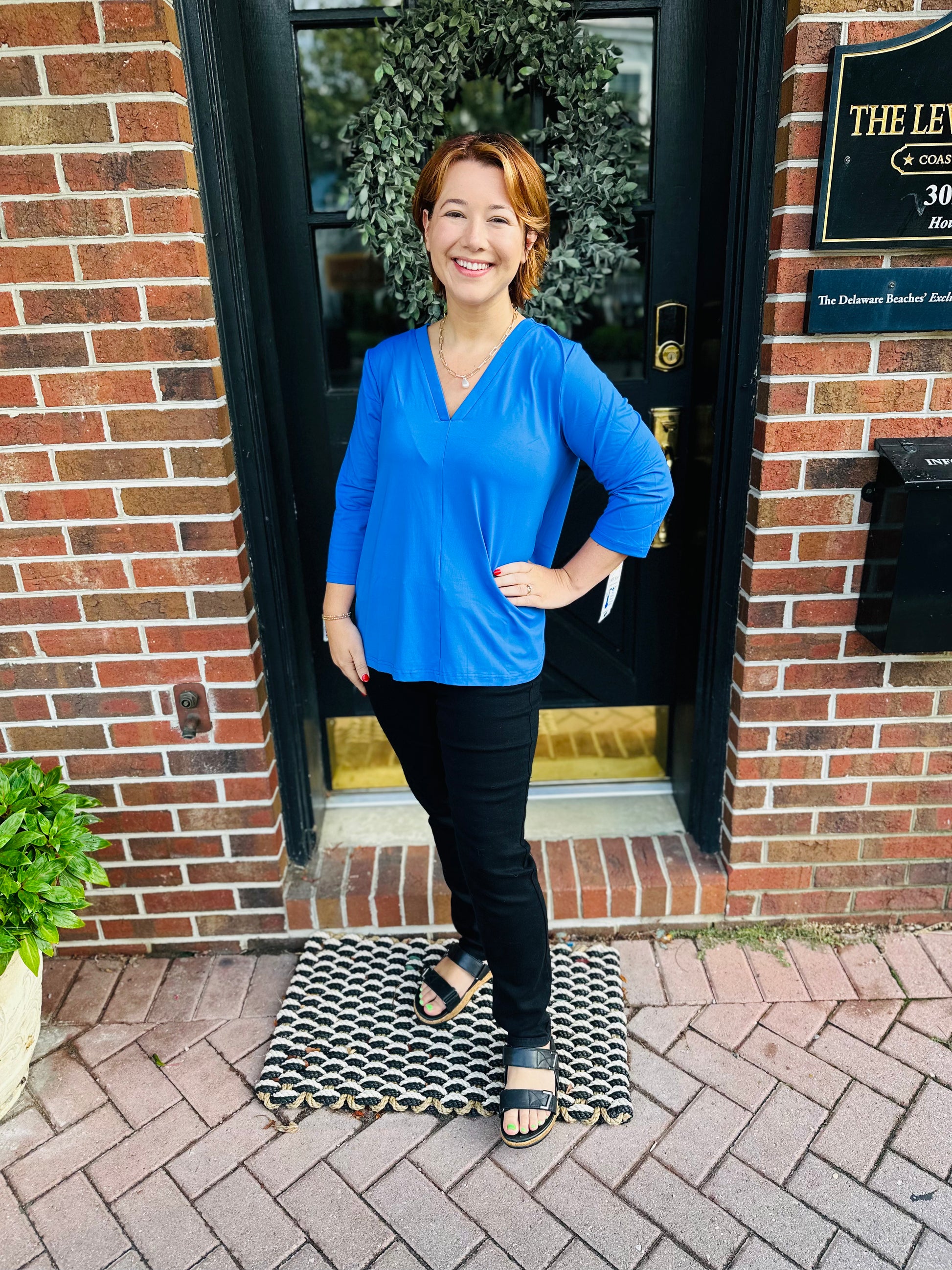 Lulu B Blue V-Neck 3/4 Sleeve Top – Blooming Boutique