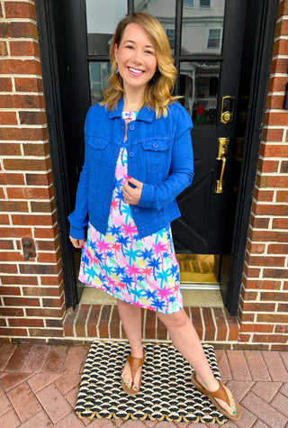 Beachtime by Lulu B Bright Palm Tree Sleeveless Keyhole Dress