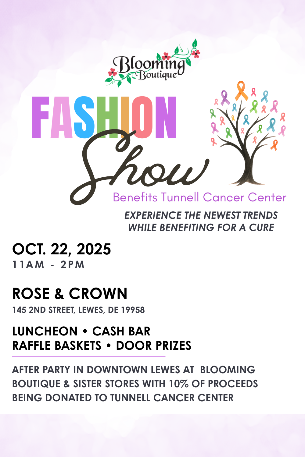 Join us for an afternoon of fashion, community, and philanthropy at the Blooming Boutique Fashion Show, benefitting the Tunnell Cancer Center.