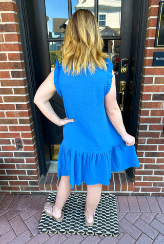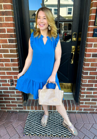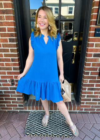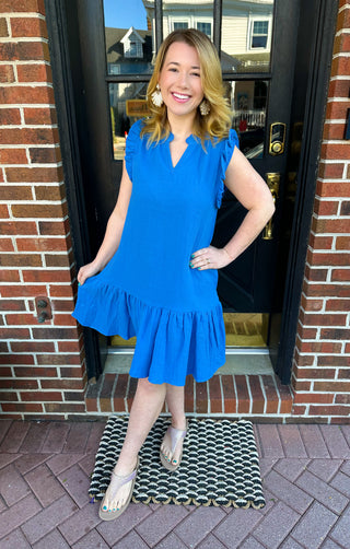 Royal Blue Bridget Gauze Ruffle Sleeve Dress