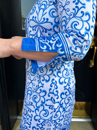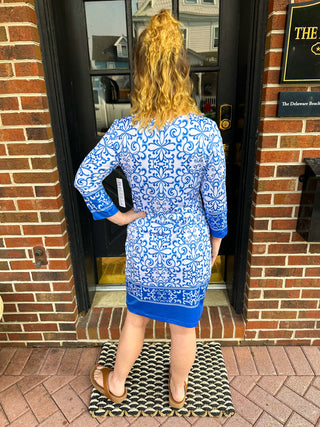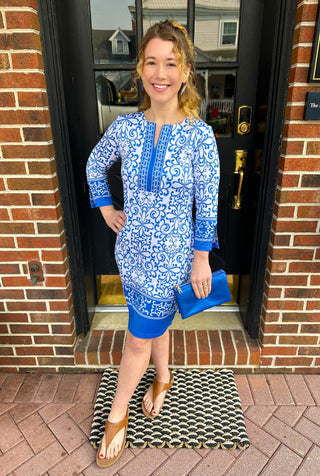 Tango Mango Whimsy Blue 3/4 Sleeve Notch Neck Dress