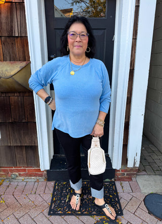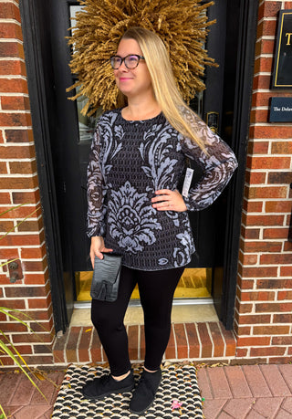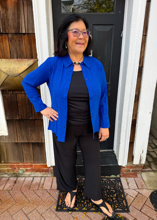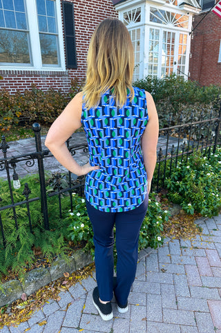 Beachtime by Lulu B Navy and Emerald Abstract Button Tunic