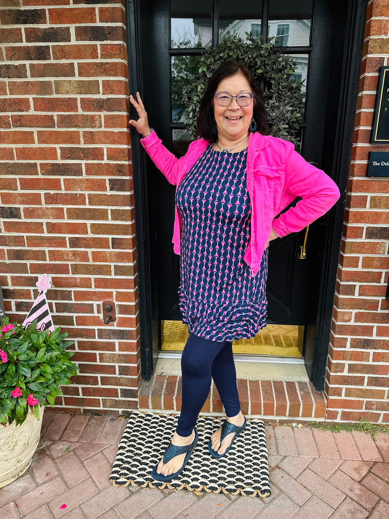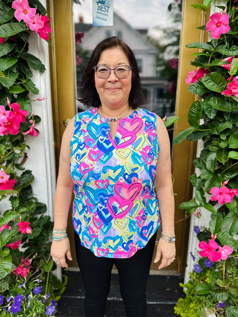 Beachtime by Lulu B Navy and Emerald Abstract Button Tunic
