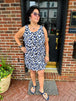 - This dress is perfect for going out to dinner or sitting at the bar! The ruffles and prints make this dress the ultimate "tummy-issue-disguiser". You'll look and feel fabulous in this dress that looks great on everyone! Wear sleeveless or pair with a linen jacket or cardigan for extra warmth.