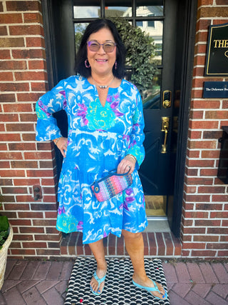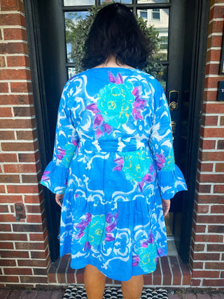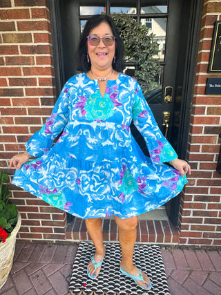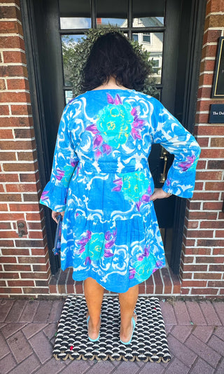 Blue Crete 3 Ruffle KikiSol Dress w/ Pockets