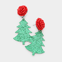 Glitter Christmas Tree Earrings with Red Seed Bead