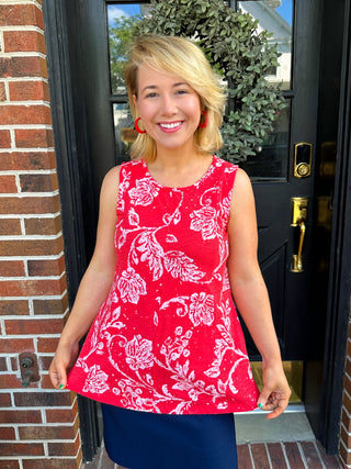 Escape by Habitat Red Stamped Cotton Seamed Tank