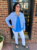 Cat, marketing guru is 5'2" tall and typically wears an XS in all lines at Blooming Boutique. She wears a small in the Lulu B linen jacket. For jeans she wears a 5 or 26. For skinny jeans, she wears a 27.