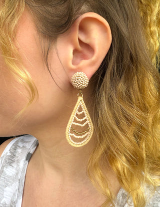 Natural-colored beads in a teardrop shape. These are a post-style earring.