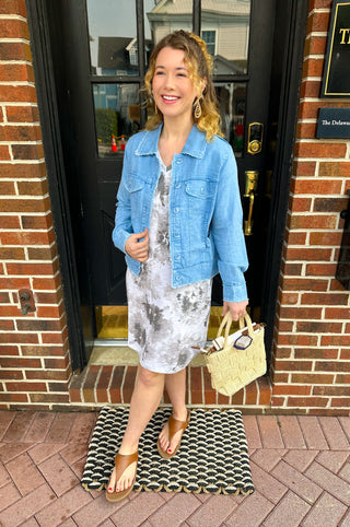 Cat, marketing guru is 5'2" tall and typically wears an XS in all lines at Blooming Boutique. She wears a small in the Lulu B linen jacket. For jeans she wears a 5 or 26. For skinny jeans, she wears a 27.