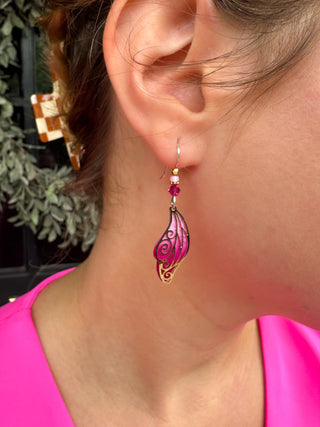 Purple tones make up these vibrant flower fish hook earrings.