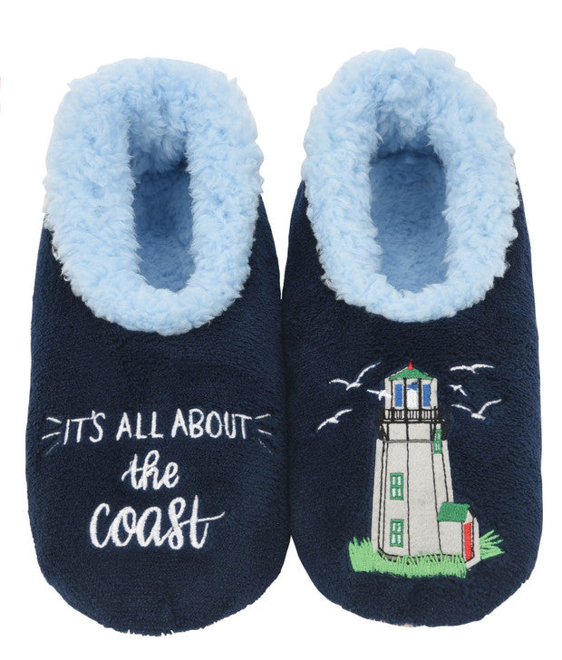 These comfy slippers feature a non-skid sole with super soft sherpa lining.