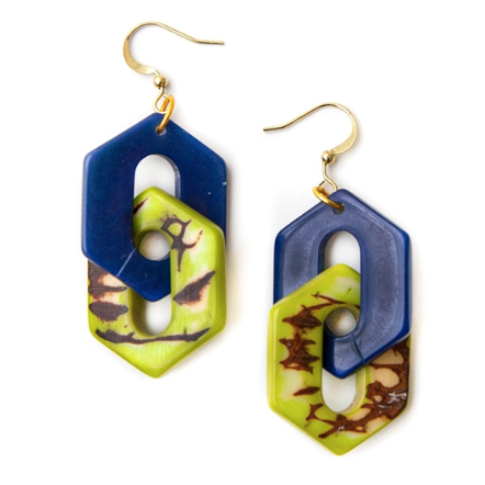 Colorful and sustainable dangle earrings handmade with tagua pieces with natural leftover grain.