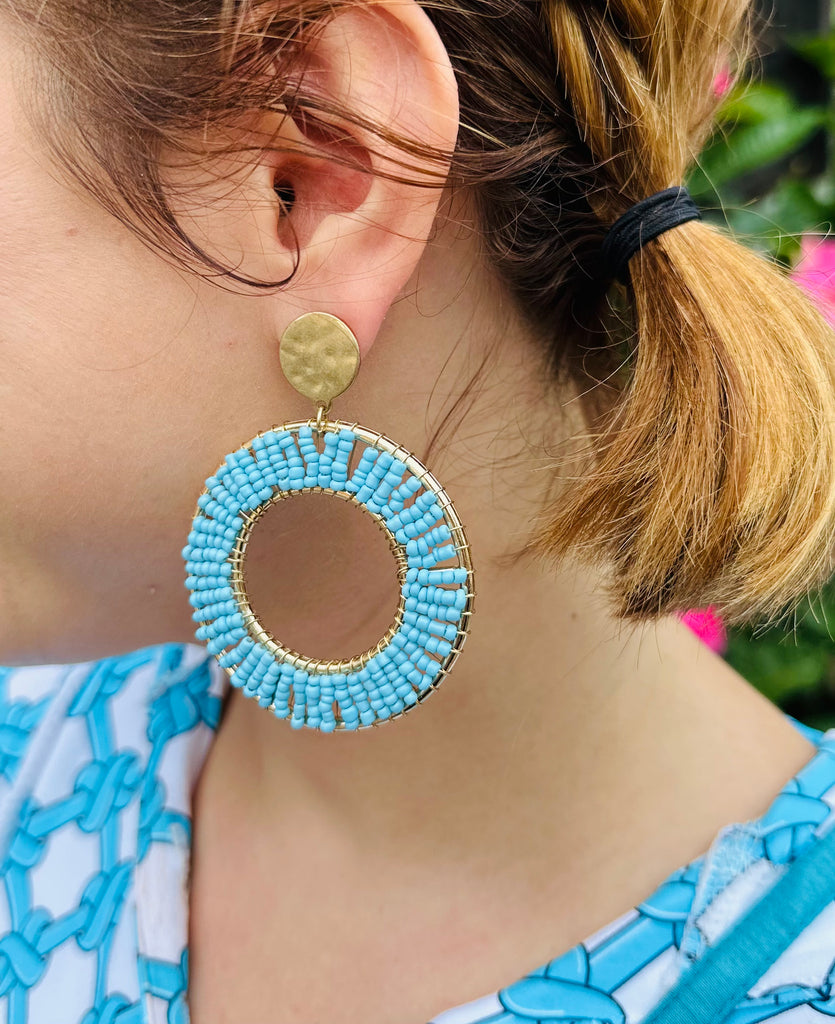 Treasure Blue Beaded Circular Earrings – Blooming Boutique