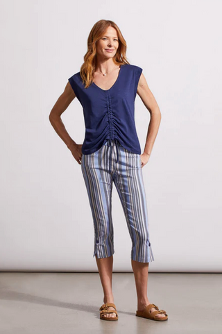 Tribal Jeans JetBlue Sleeveless V-Neck Top With Ruching